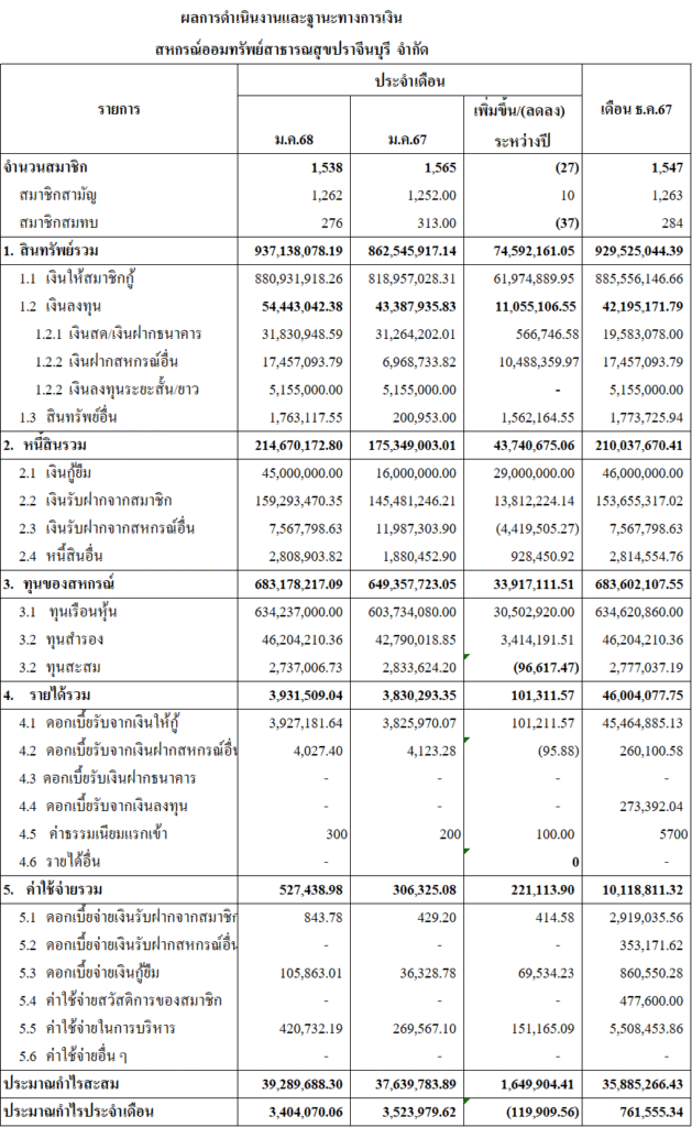 ผลการดำเนินงานและฐานะทางการเงิน ประจำเดือน มกราคม 2568