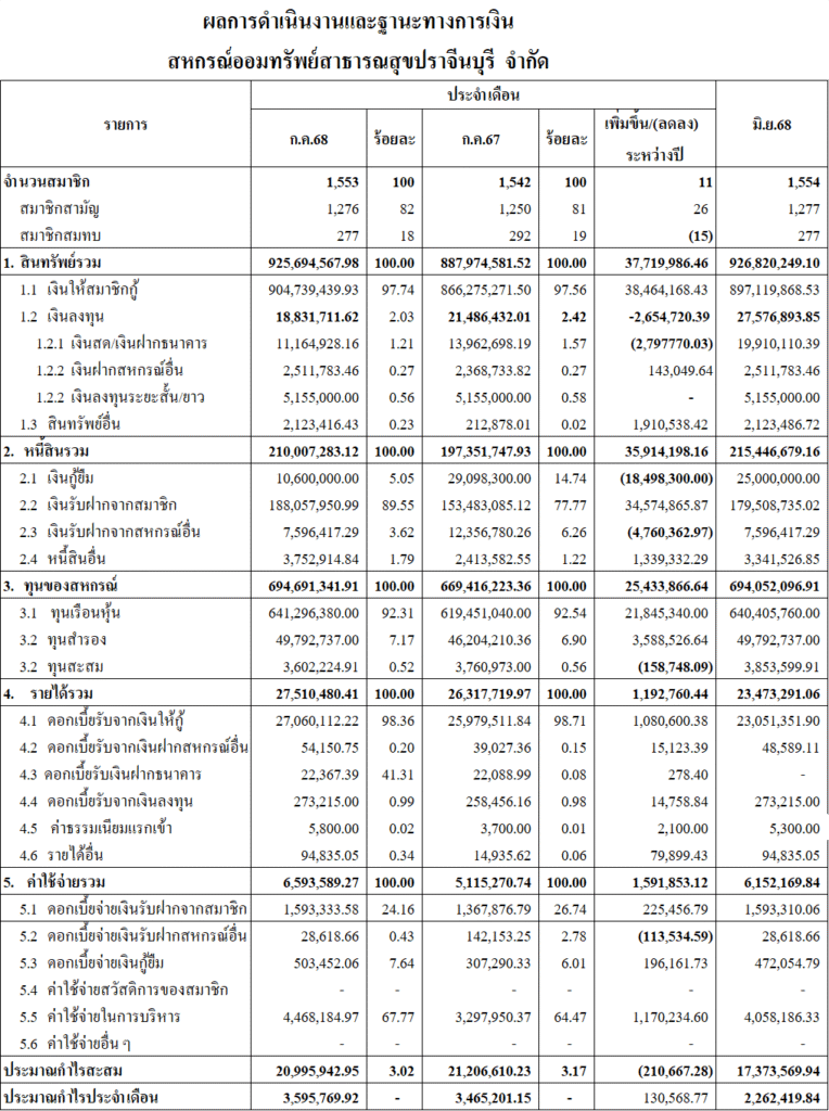 ผลการดำเนินงานและฐานะทางการเงิน ประจำเดือน กรกฎาคม 2568